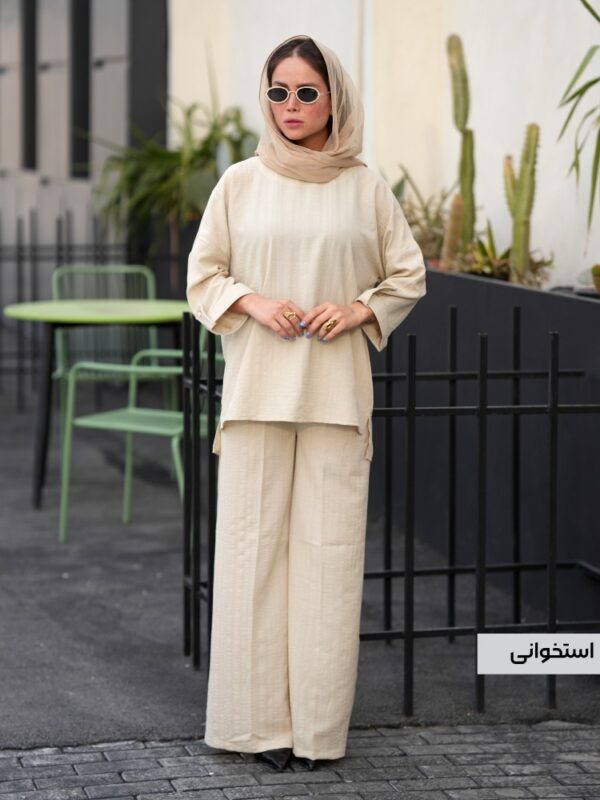 • طراحی مدرن و چندکاره: تونیک با طراحی آزاد و راحت، مناسب برای انواع سایزها و فرم‌های بدن است. قد مناسب آن هماهنگی زیبایی با شلوار ایجاد می‌کند. شلوار نیز با طراحی راحت (مثلاً کمر کشی یا دمپا راحت) حرکت را برای شما آسان می‌کند.